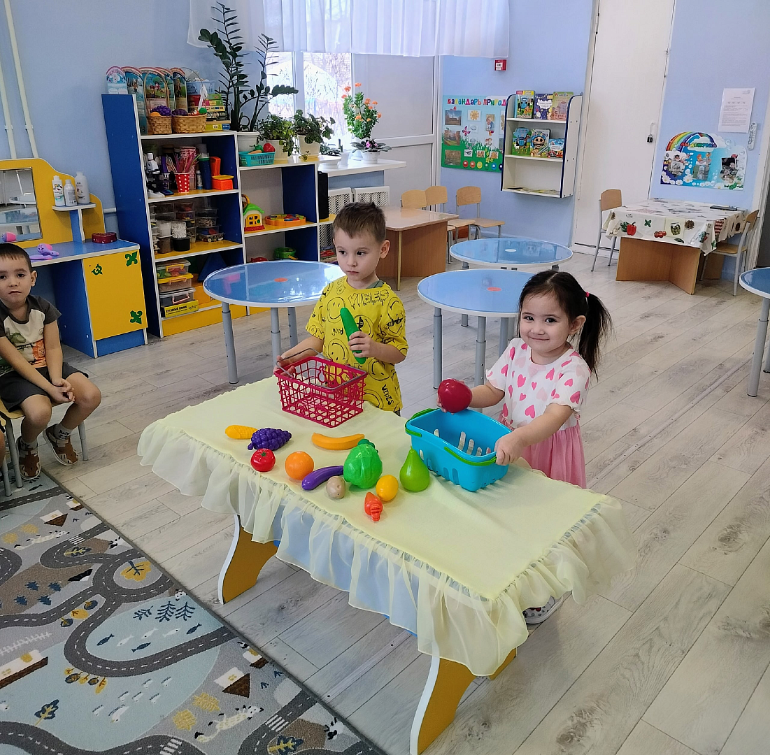 - "Собири витаминку" - дети собирали фрукты и овощи в разные корзины;