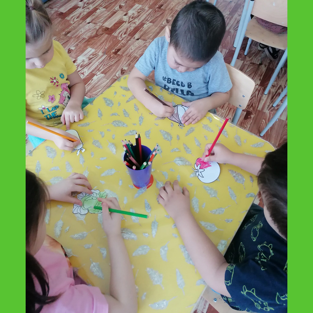 Дети раскрашивали свой фрукт или овощ, а потом составили коллективную композицию - наполнили тарелку витаминами.