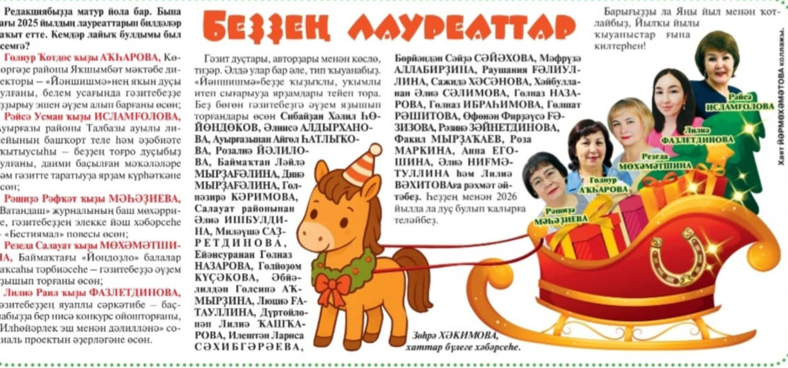 Беҙҙең балалар баҡсаһының тәрбиәсеһе Мөхәмәтшина Резедә Салауат ҡыҙы йыл буйы әүҙем яҙышып торғаны өсөн "Йәншишмә" республика балалар гәзитенең лауреаты булды.