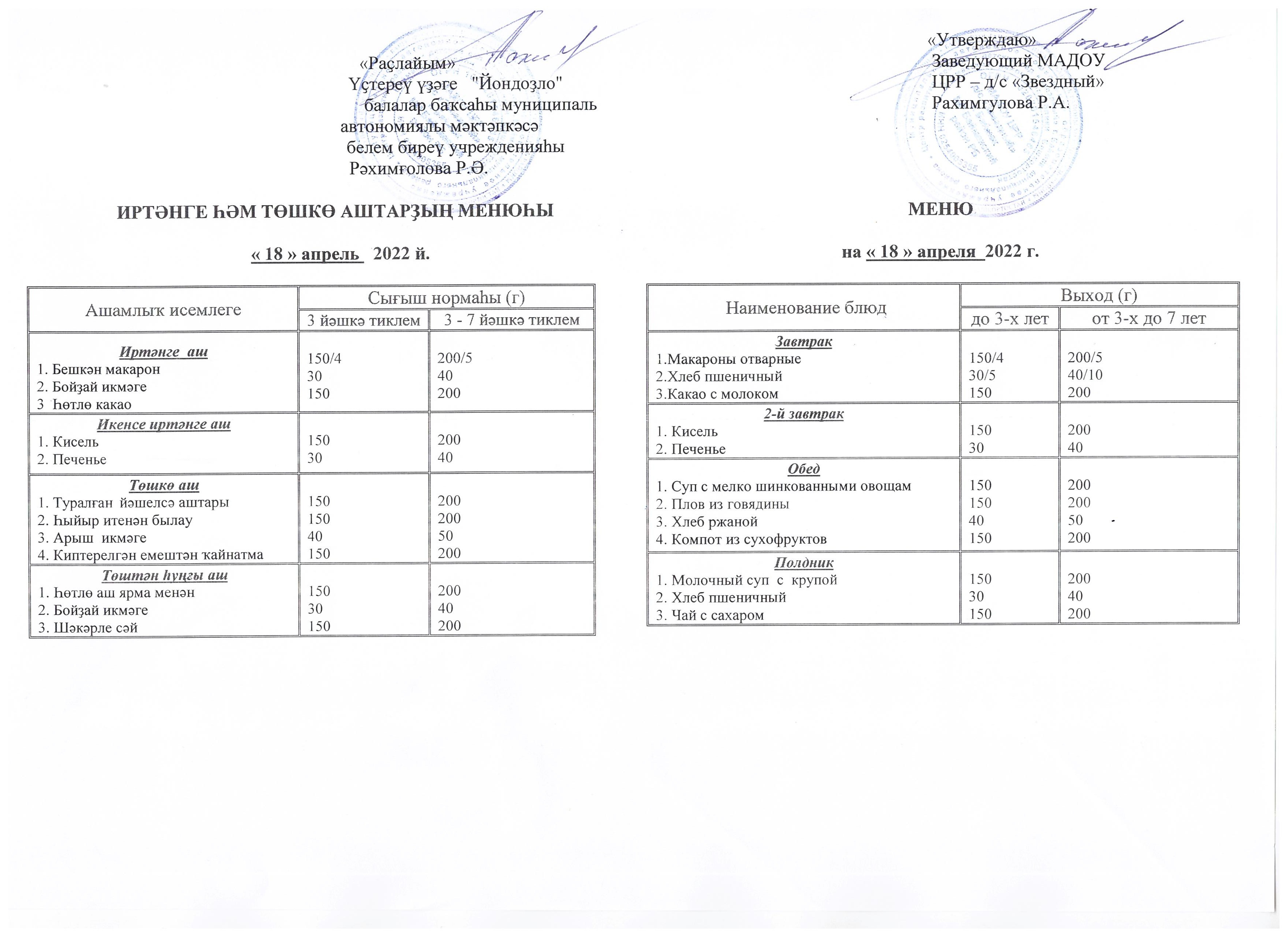 (Меню на 18.04.22 г.)