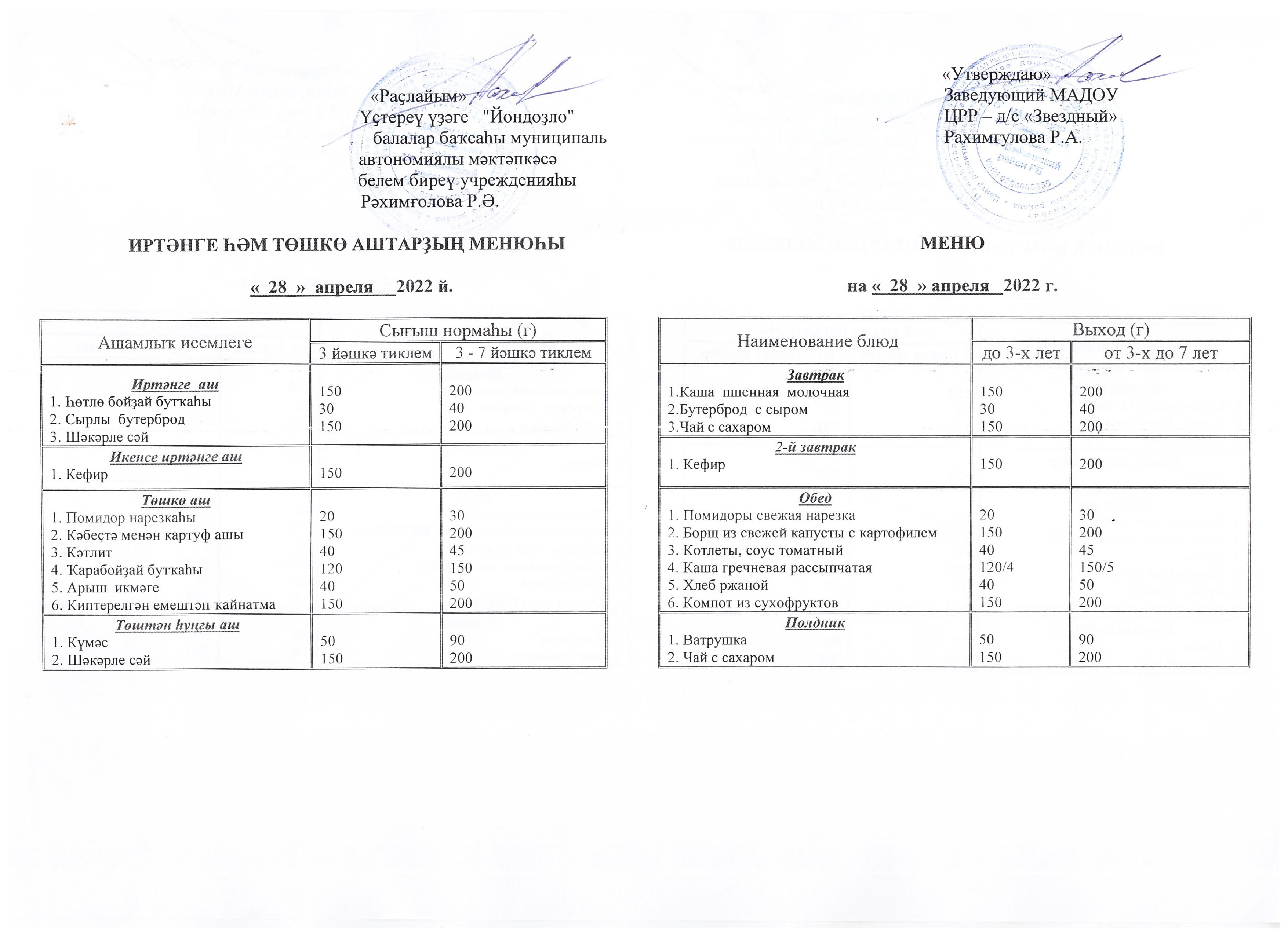 (Меню на 28.04.22 г.)