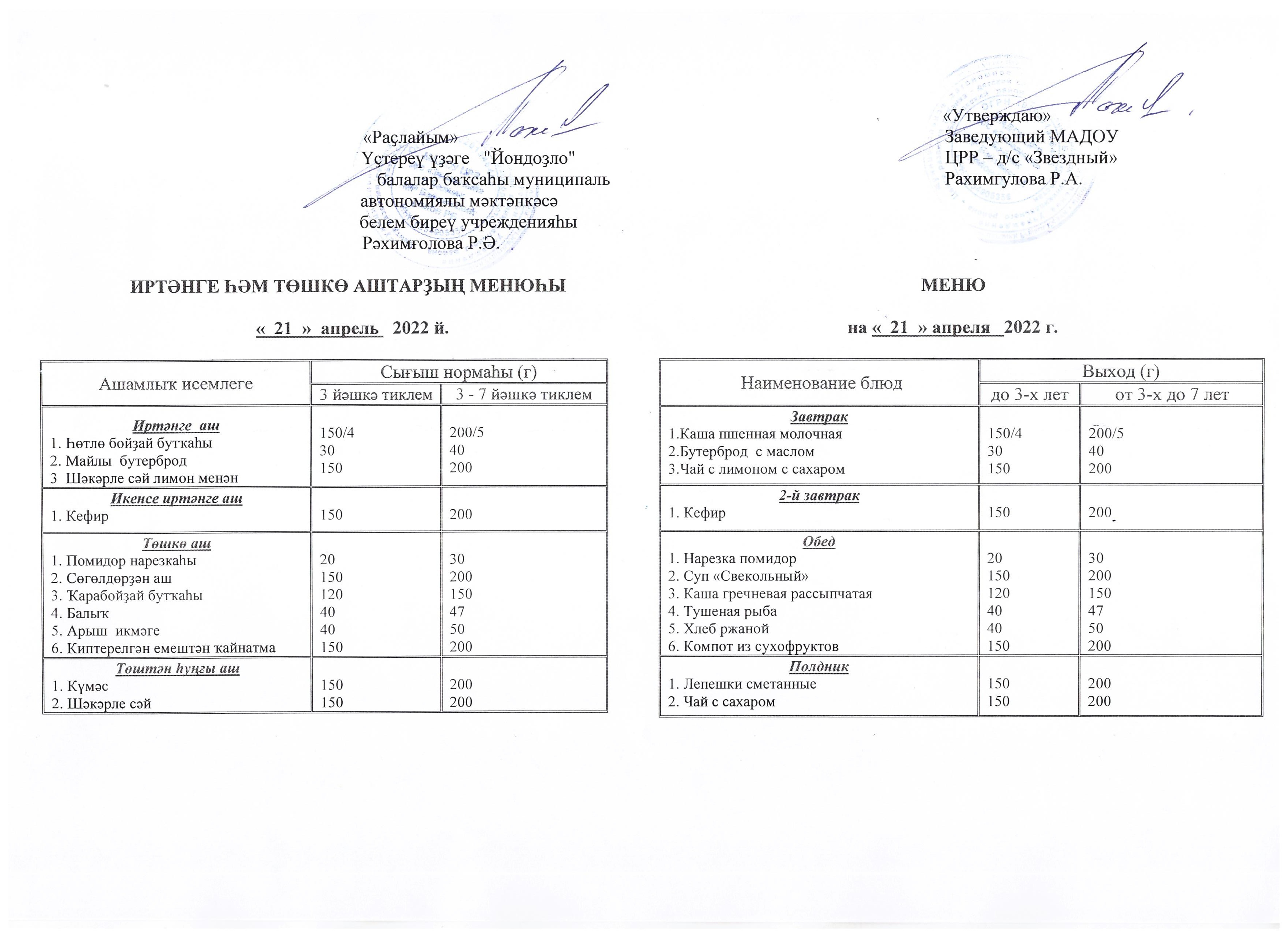 (Меню на 21.04.22 г.)