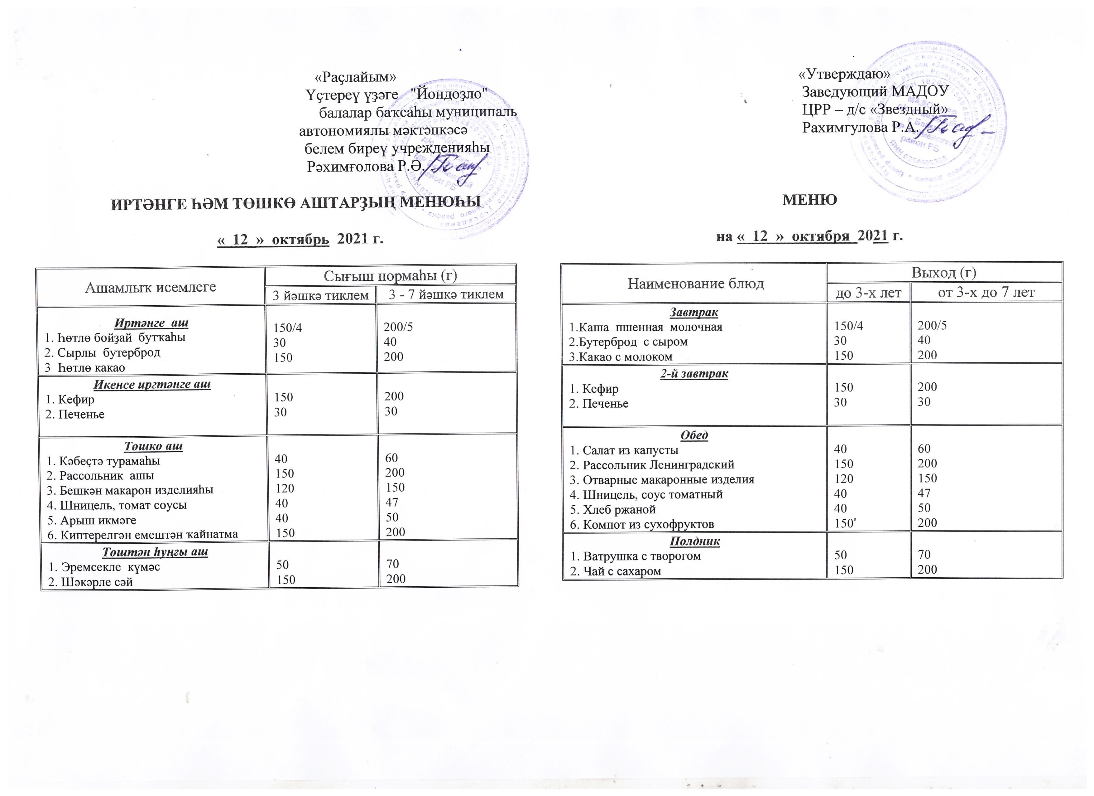 (Меню на 12.10.2021 г.)
