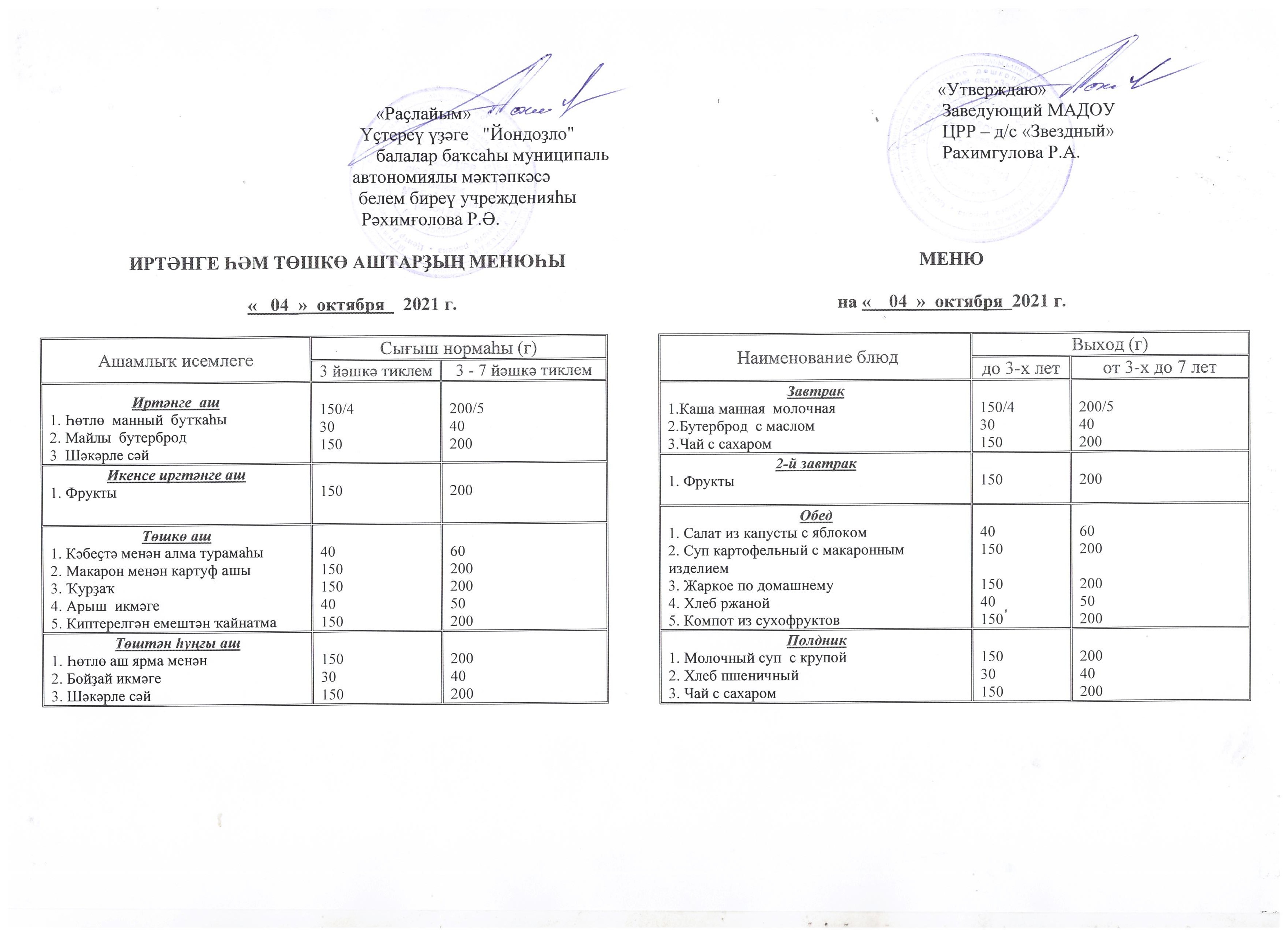 (Меню на 4.10.2021)