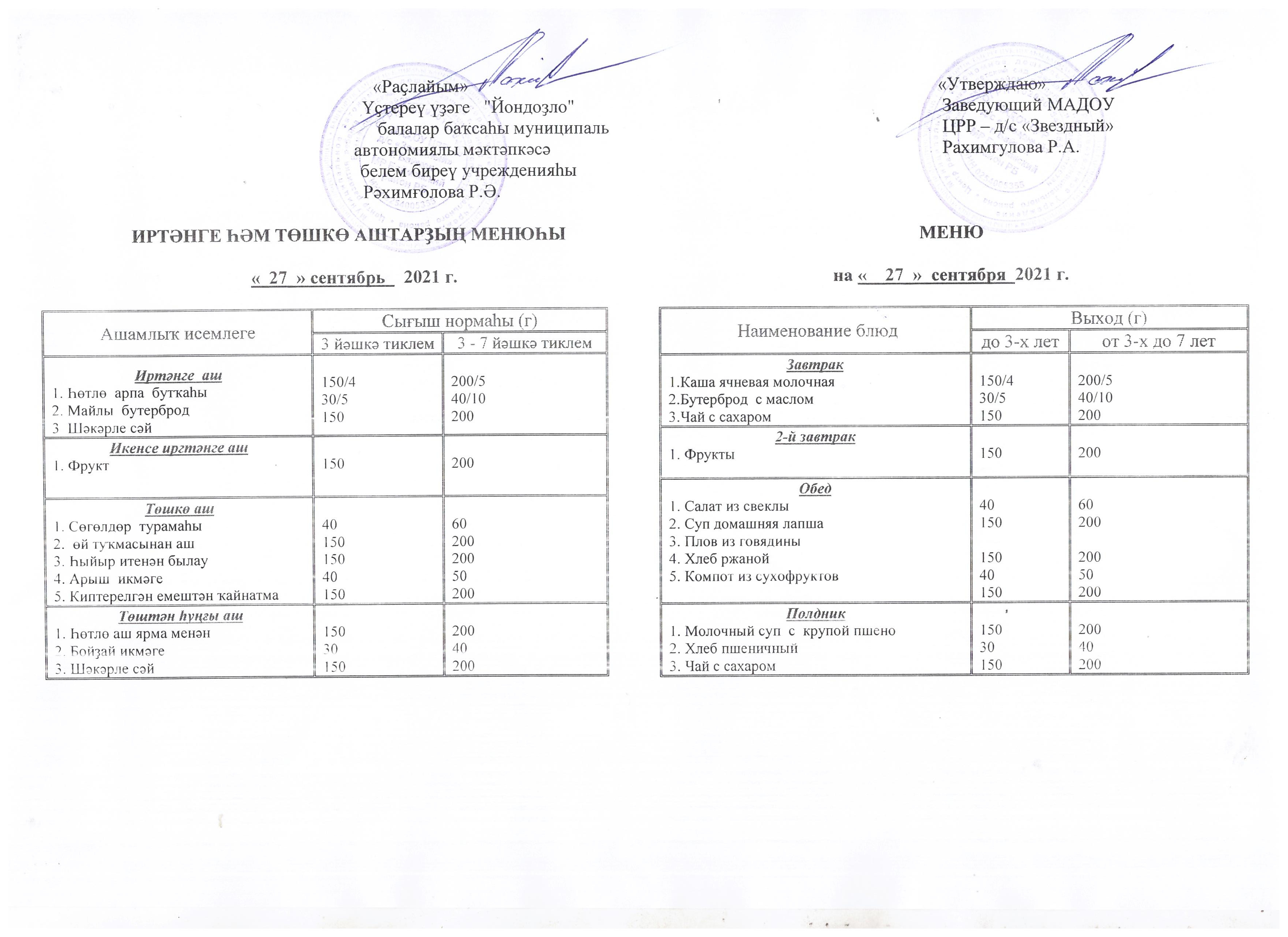 (Меню на 27.09.21 г.)